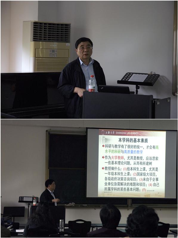 叶志明副校长以自己担任工程力学教授的科研经历引入“作为一名高校教师应该具有哪些基本素质”为话题。叶校长认为要当好一名高校的教师应该具有五项基本素质,一是要有坚强的本学科实力,这些实力来源于高超的科研能力;并还要拜读过本学科的经典著作;二是要具备你所任教相关学科的素养,这些素养使得你能够非常自如地教授来自各个学院专业的学生;三是要具备科学和人文素养,这有时是决定一个人创造能力方面极为重要的素养;四是要懂得教育学理论、教学规律;五是要掌握好的教育教学方法,会熟练使用各种现代化的教学手段。五个方面缺一不可,只有具备这五方面素养,才能成为一位合格的高校教师。